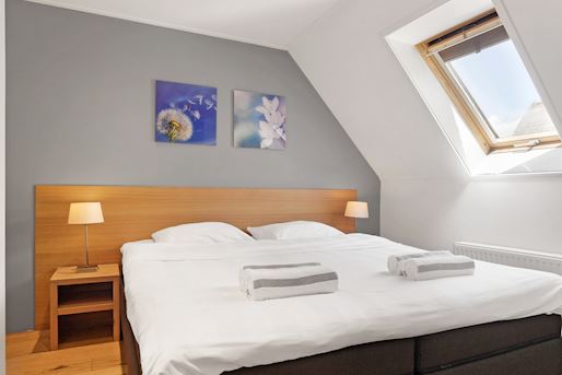 - Schlafzimmer mit einem Auping Boxspring-Doppelbett (Doppelbettdecke), 2-Personen Softtopper und Flatscreen-TV auf der ersten Etage