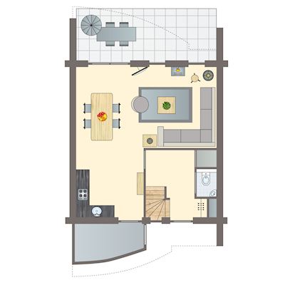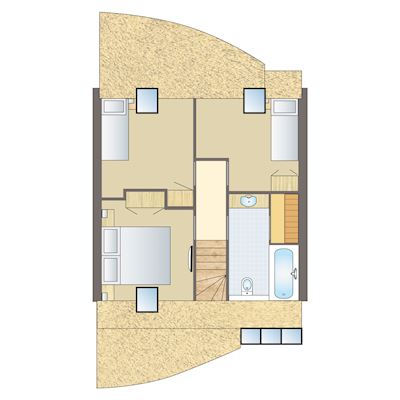 Dieser Typ hat Unterkünfte mit zwei und drei Schlafzimmern. Die Anzahl der Zimmer kann nach Wunsch gebucht werden.