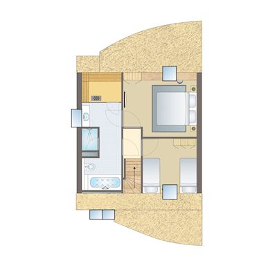 - Schlafzimmer mit zwei Auping Boxspring- Einzelbetten auf der ersten Etage