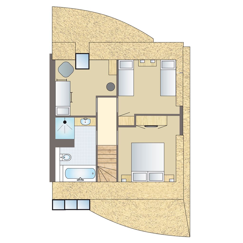 - Schlafzimmer mit zwei Auping Boxspring- Einzelbetten auf der ersten Etage