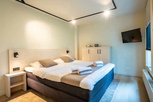 - Zwei Schlafzimmer mit jeweils einem Auping Boxspring-Doppelbett, Softtopper und Flatscreen-TV